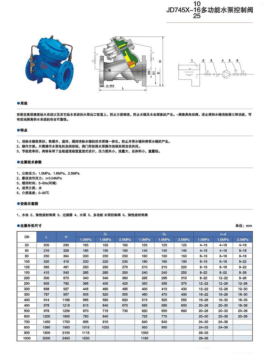 | 產(chǎn)品名稱:JD745X-10 16 25多功能水泵控制閥 |